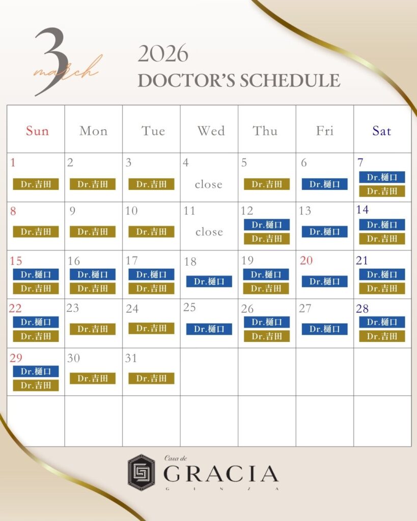 NEWSクリニックからのお知らせ 3月ドクタースケジュールをアップいたしました。 2026.01.29 いつもCasa de GRACIA GINZAをご愛顧くださりありがとうございます。 3月のドクタースケジュールをお知らせします。 カウンセリングのご予約はこちらから Casa de GRACIA GINZA TEL:03-5579-9601 PREV LIST NEXT